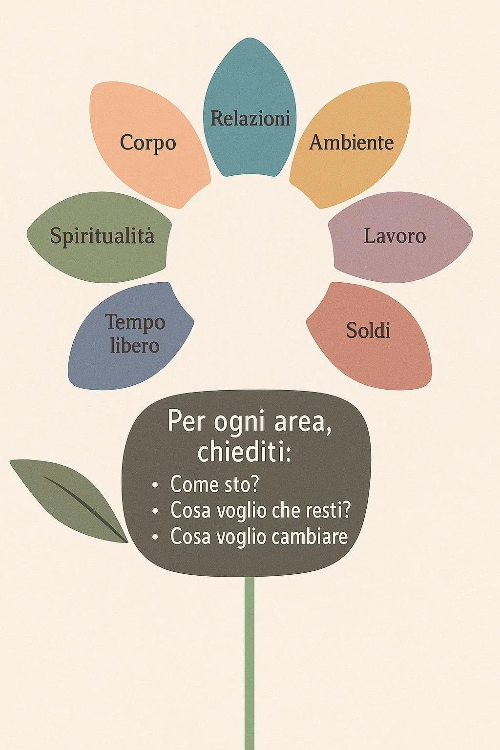 Puoi guardare queste aree come 8 petali di un fiore: alcuni aperti, altri chiusi. Nessun giudizio. Solo osservazione.